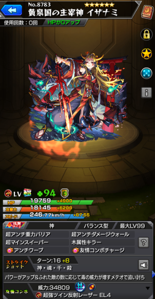 イザナミの新クエスト【超究極】をクリアすることで獣神化が解放されます。